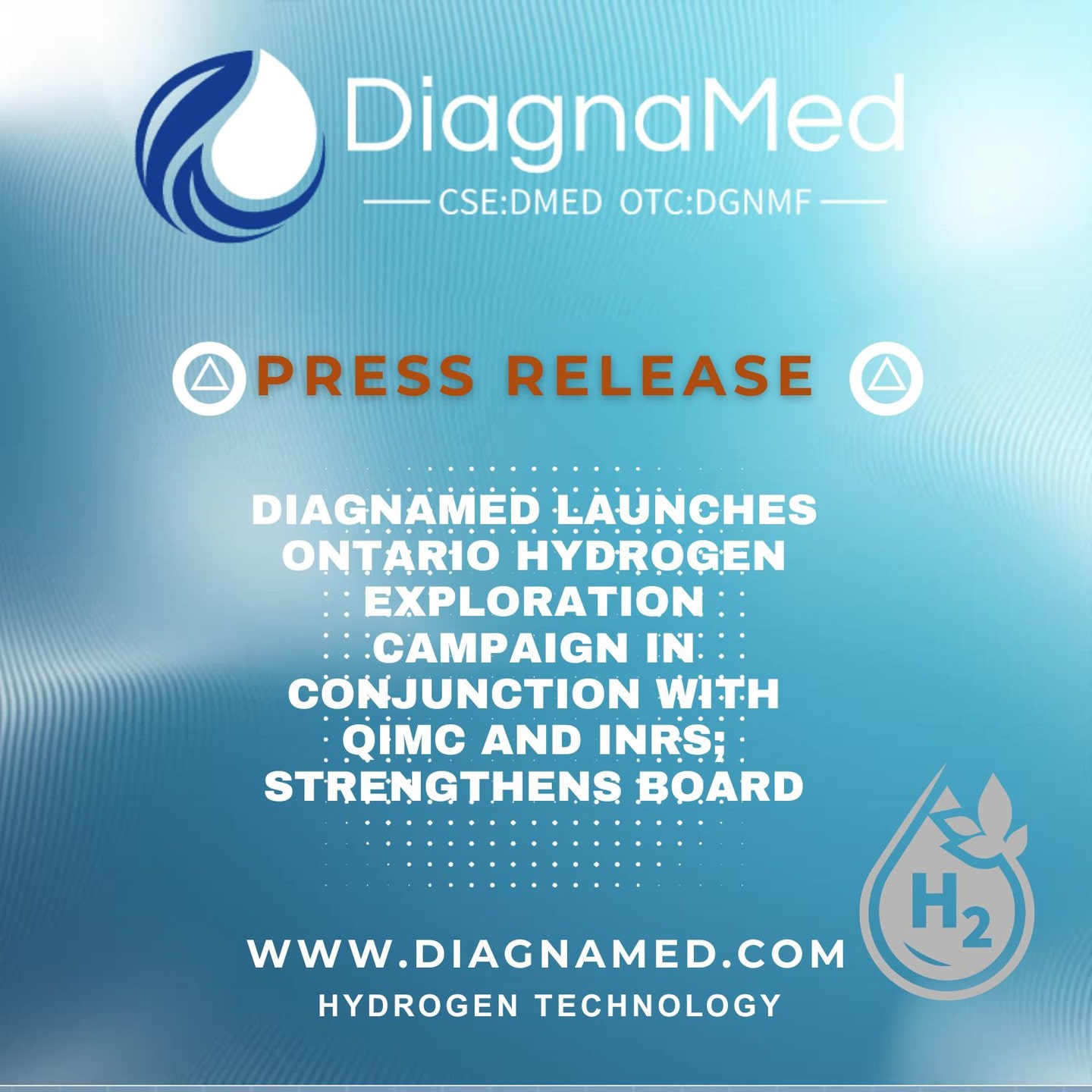 DiagnaMed Launches Ontario Hydrogen Exploration Campaign in Conjunction with QIMC and INRS; Strengthens Board